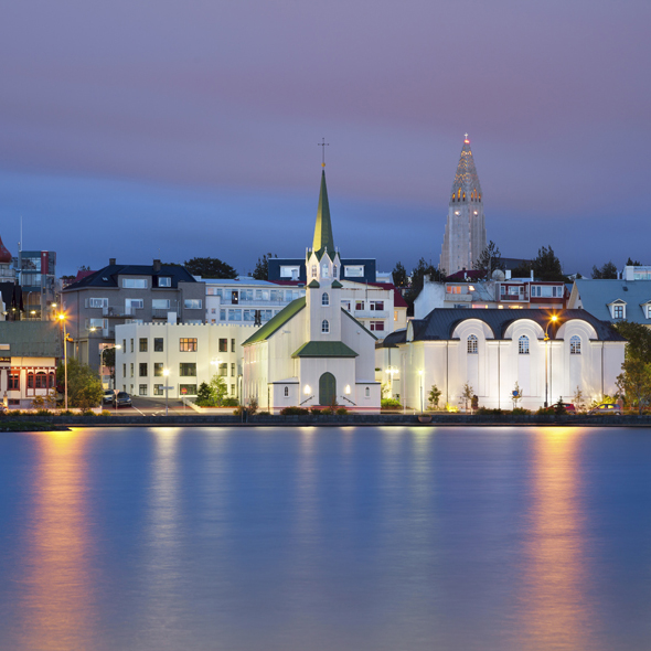 According to legend, Ingolfur Arnarson threw pillars engraved with images of pagan gods overboard from his Viking ship, vowing to settle wherever the pillars washed ashore. They landed at Smoky Bay where the first settlement of Reykjavik was established around 870 AD. The name Reykjavik, or "Smoky Bay," refers to the numerous geysers emanating from the thermal springs beneath the capital. Today, Reykjavik is a modern city but its past is preserved at many fine museums including the Arbaejarsafn.